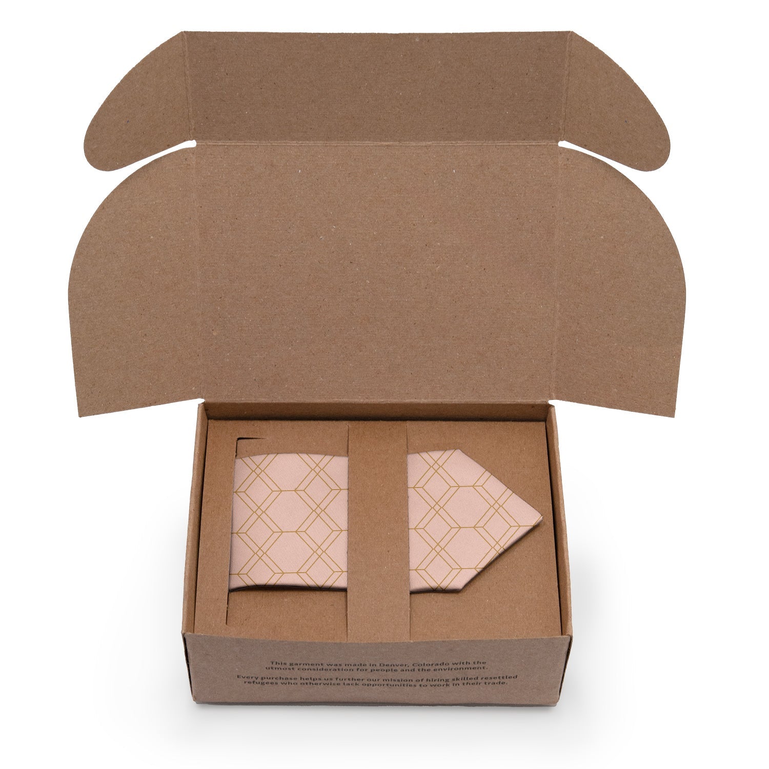 The Golden Age of Arcadia inspired these geometric ties, whose interlocking geometric shapes harken back to an age of simple elegance. The timeless geometric design is perfect for wedding ties, especially since it's fully customizable. Design your own tie by pairing this graceful pattern with your color scheme.