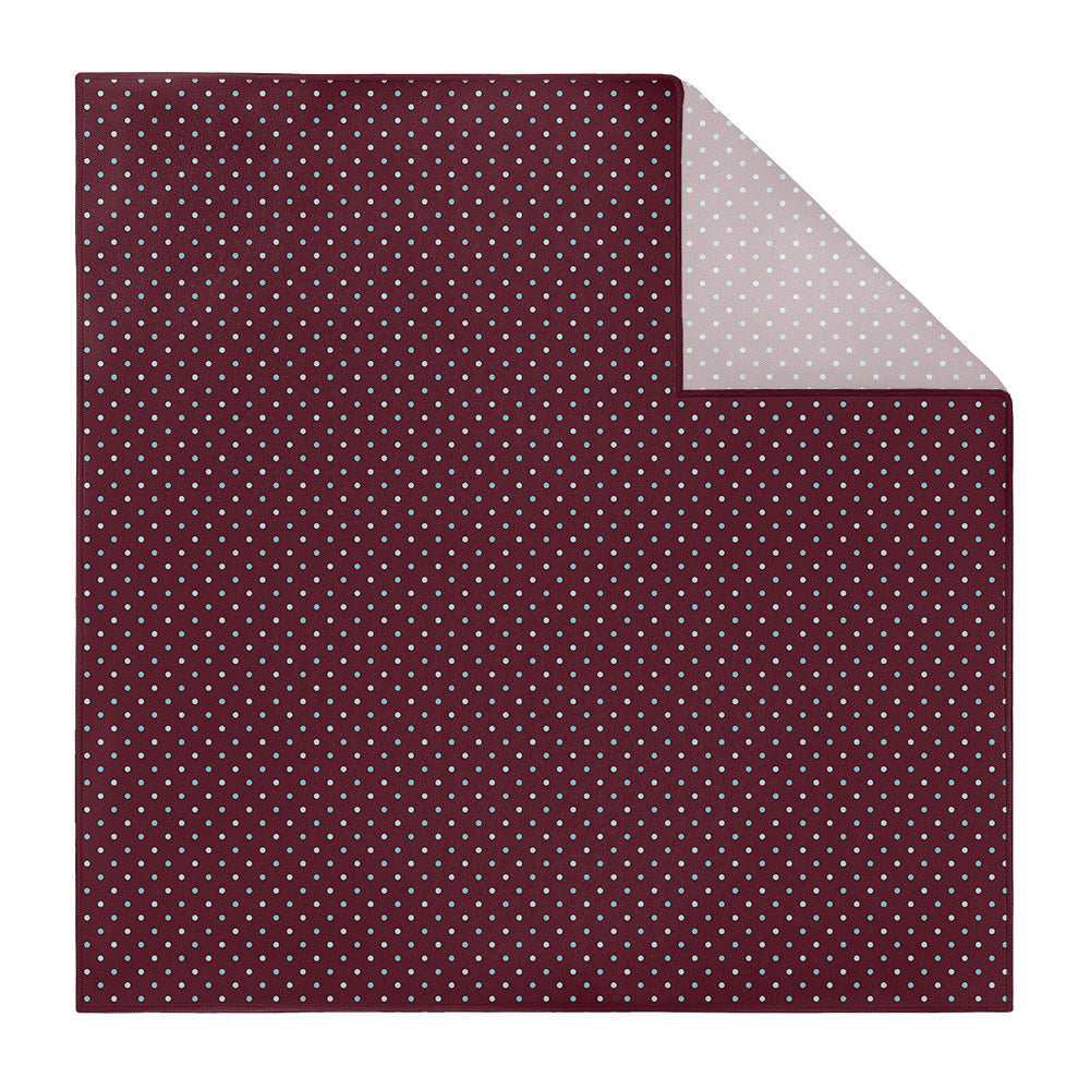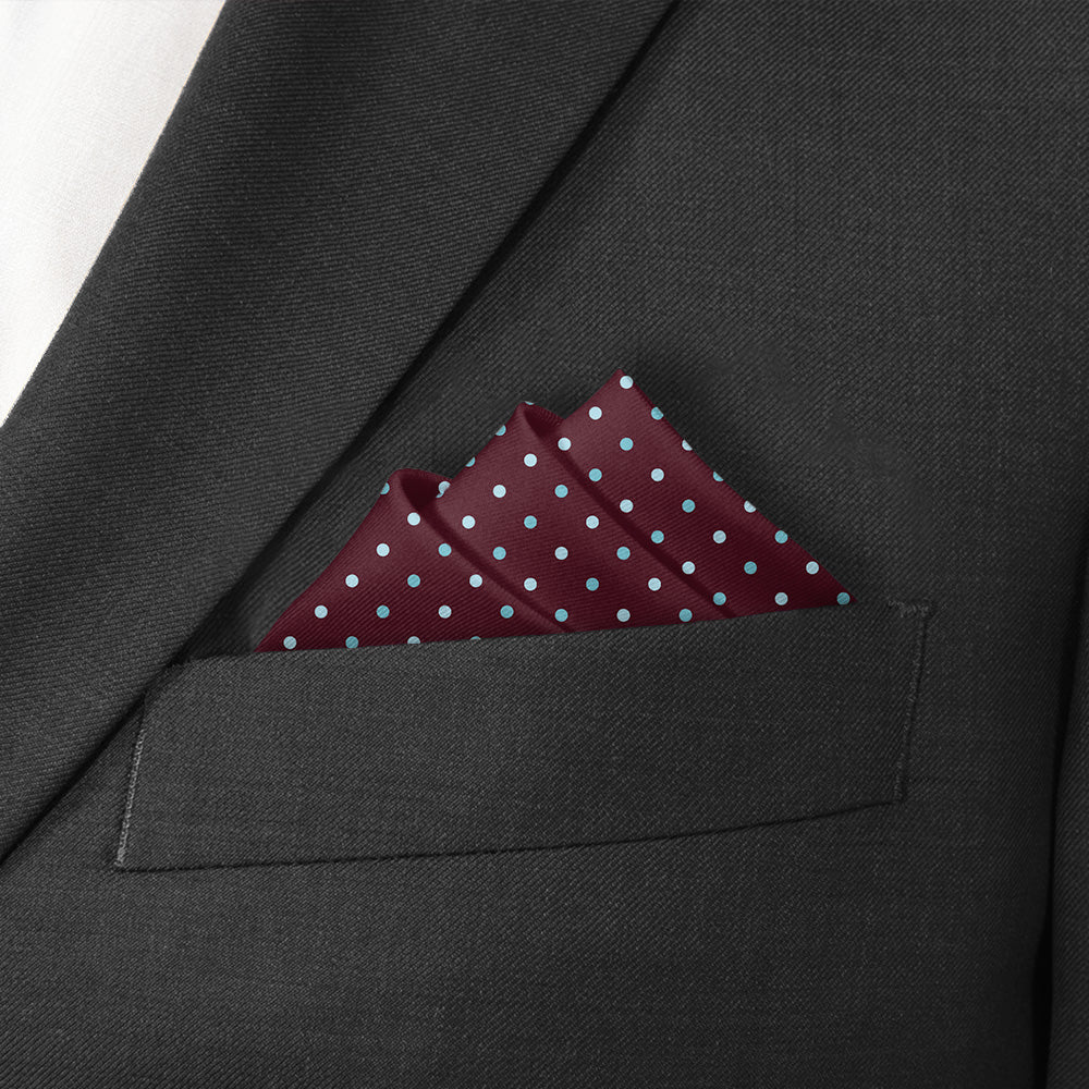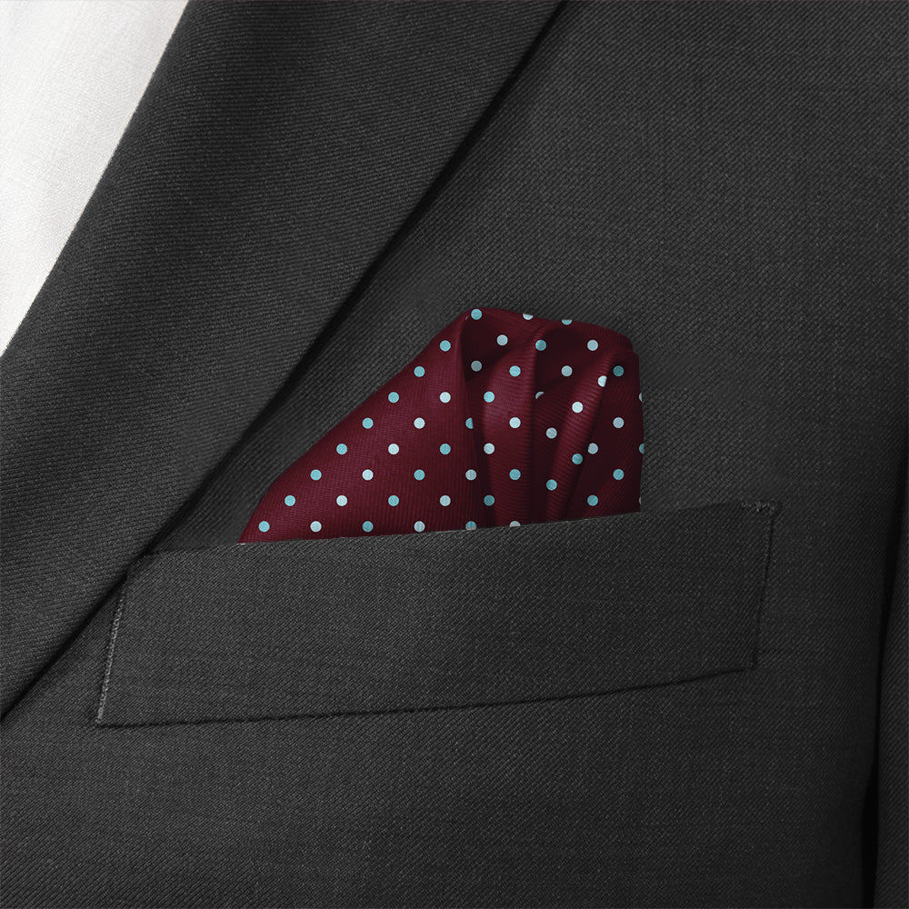 Light and airy Swiss Dot fabric inspired these pleasant polka dots, perfect for any occasion. The simple Aurora Dots pocket square pairs easily with more complicated patterns. Try it with a paisley or floral necktie in the same color scheme.