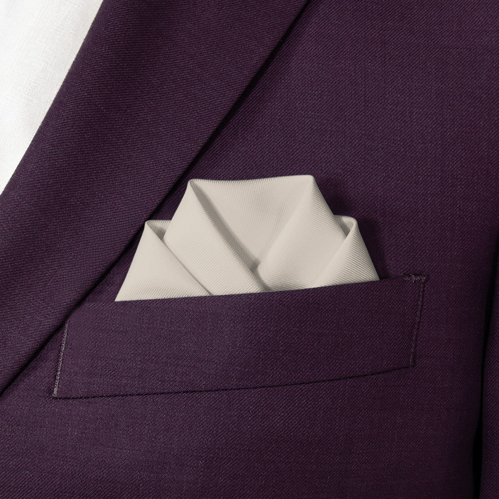 Beige wedding pocket squares convey conservative dependability. These solid pocket squares closely match Azazie Frost to make your wedding planning simple.