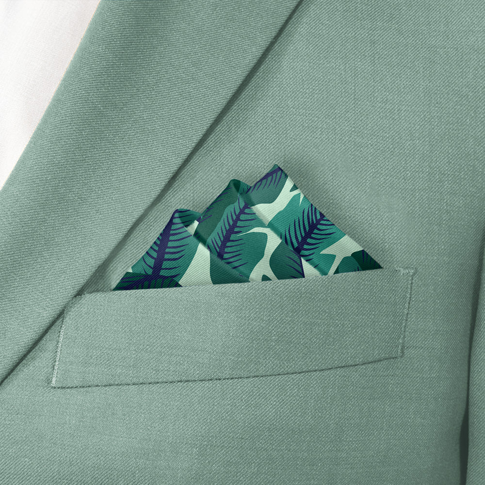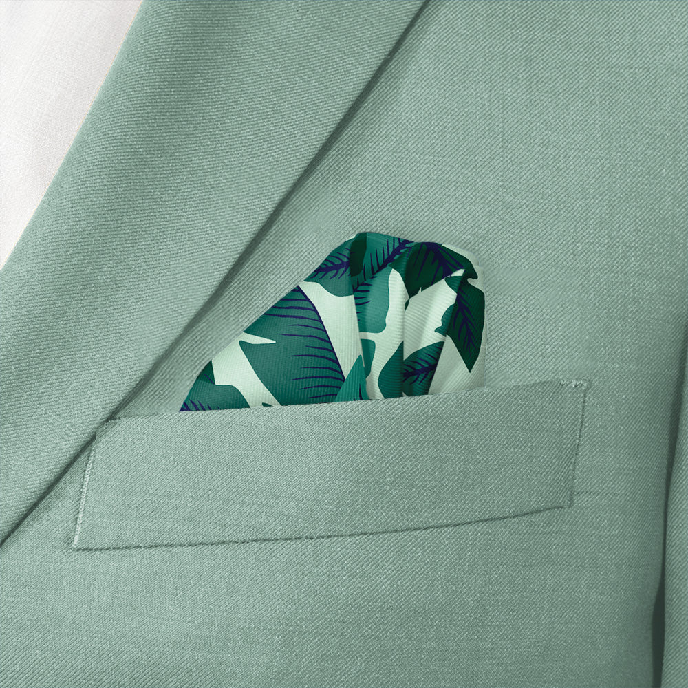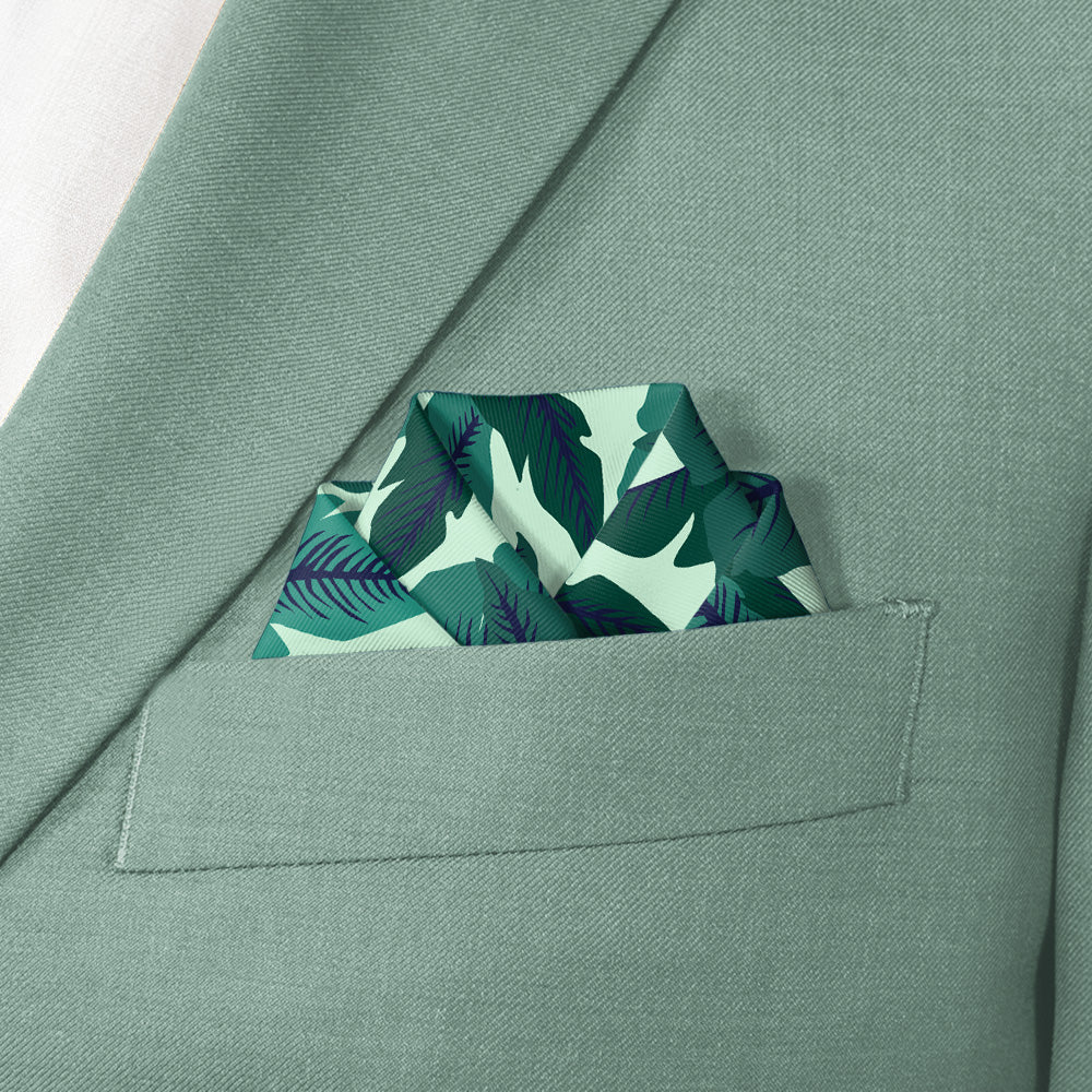 Floral pocket squares get a tropical twist with this arrangement of lush banana leaves. Whether you need a casual accent for a beachside ceremony or just want to bring a bit of summer fun to the office, the Banana Leaves pocket square tie is the perfect fit. The customizable colors can be matched to any dress, making this a great choice to match the feel of a laid back wedding.