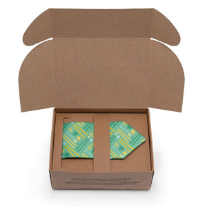Sustainably sourced thoughtful packaging ready for gifting with 100% recycled and recyclable paper printed with vegetable inks.
