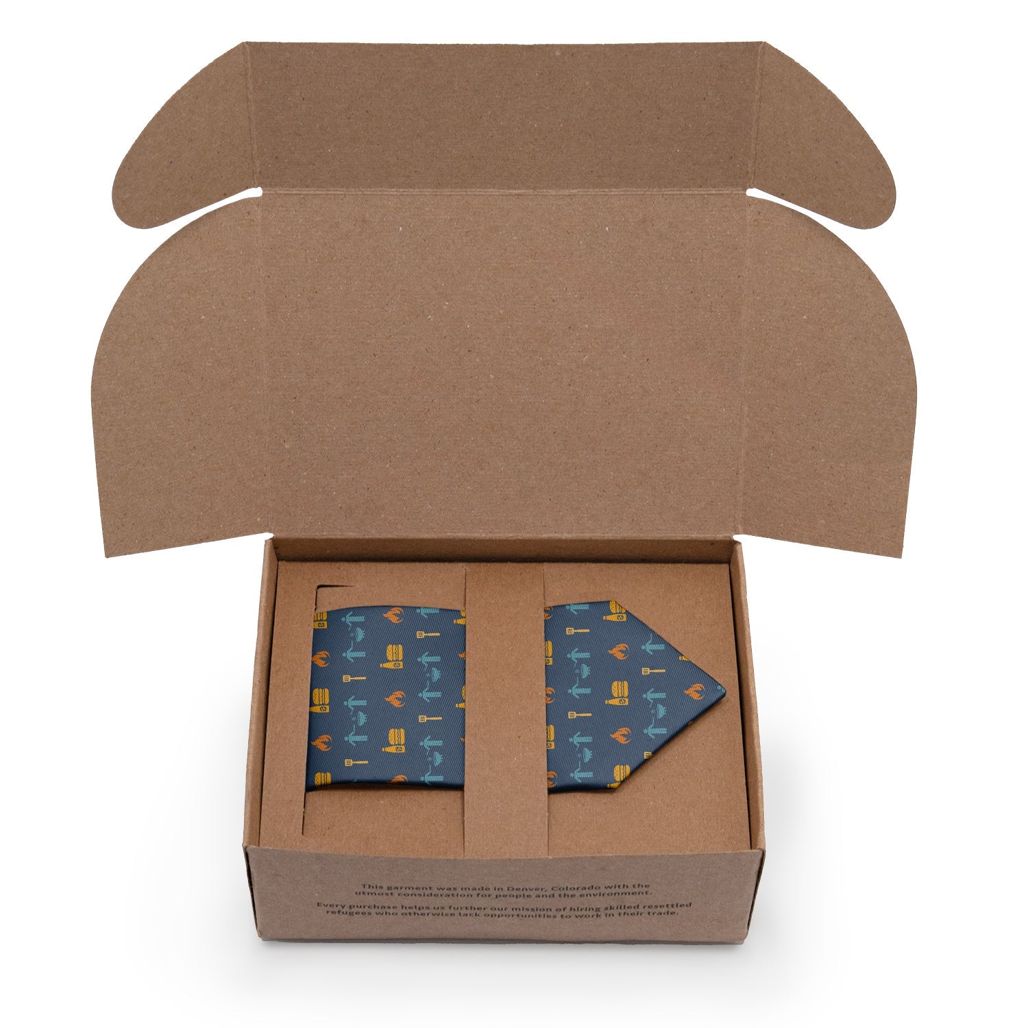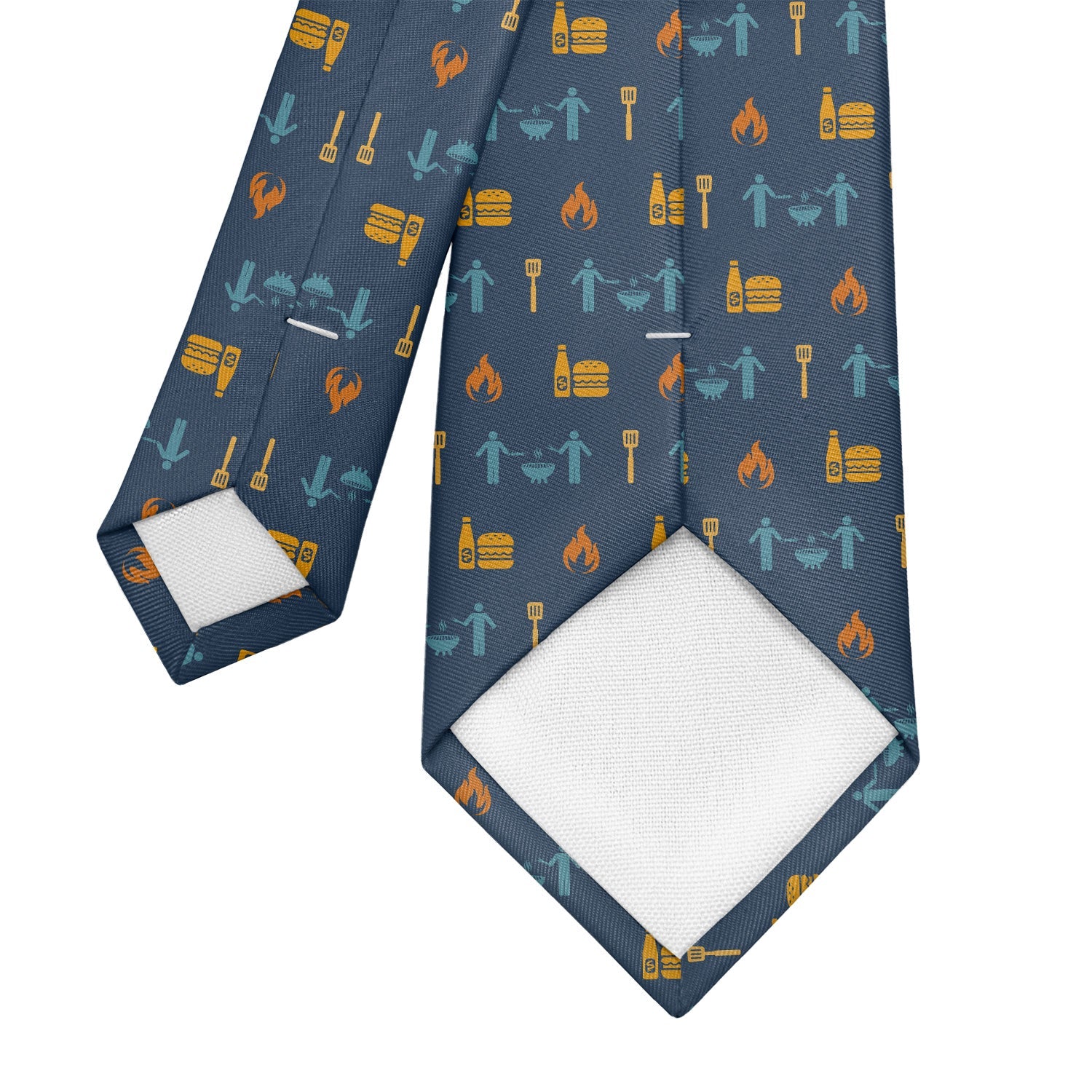 Grill masters will appreciate the fun, stylish pattern on this BBQ tie. Burgers, spatulas, friends, and flames make the Grilling with Friends necktie perfect for summer.