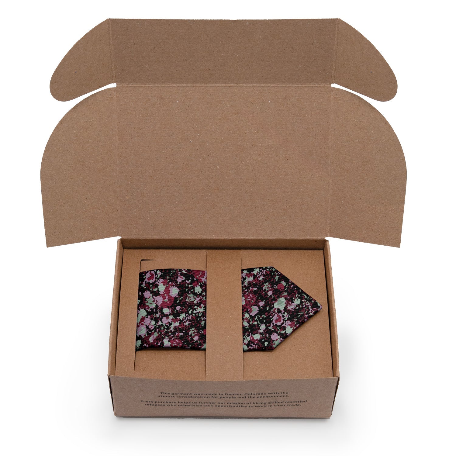 It takes a second to see the florals in this abstract, organic pattern that only hints at petals and leaves. The vibrant paint splatter effect of our Hidden Floral necktie gives it a fun and creative flair.