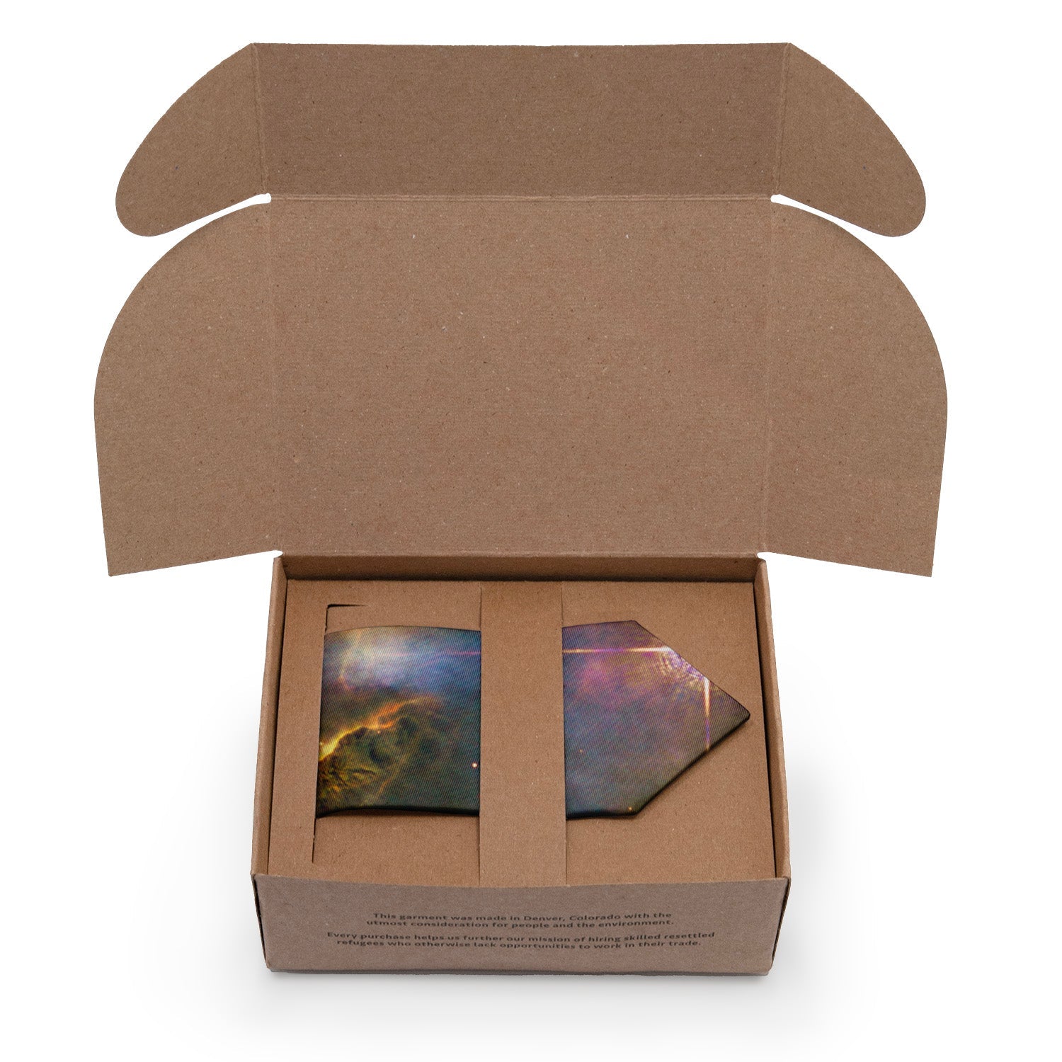 Sustainably sourced thoughtful packaging ready for gifting with 100% recycled and recyclable paper printed with vegetable inks.