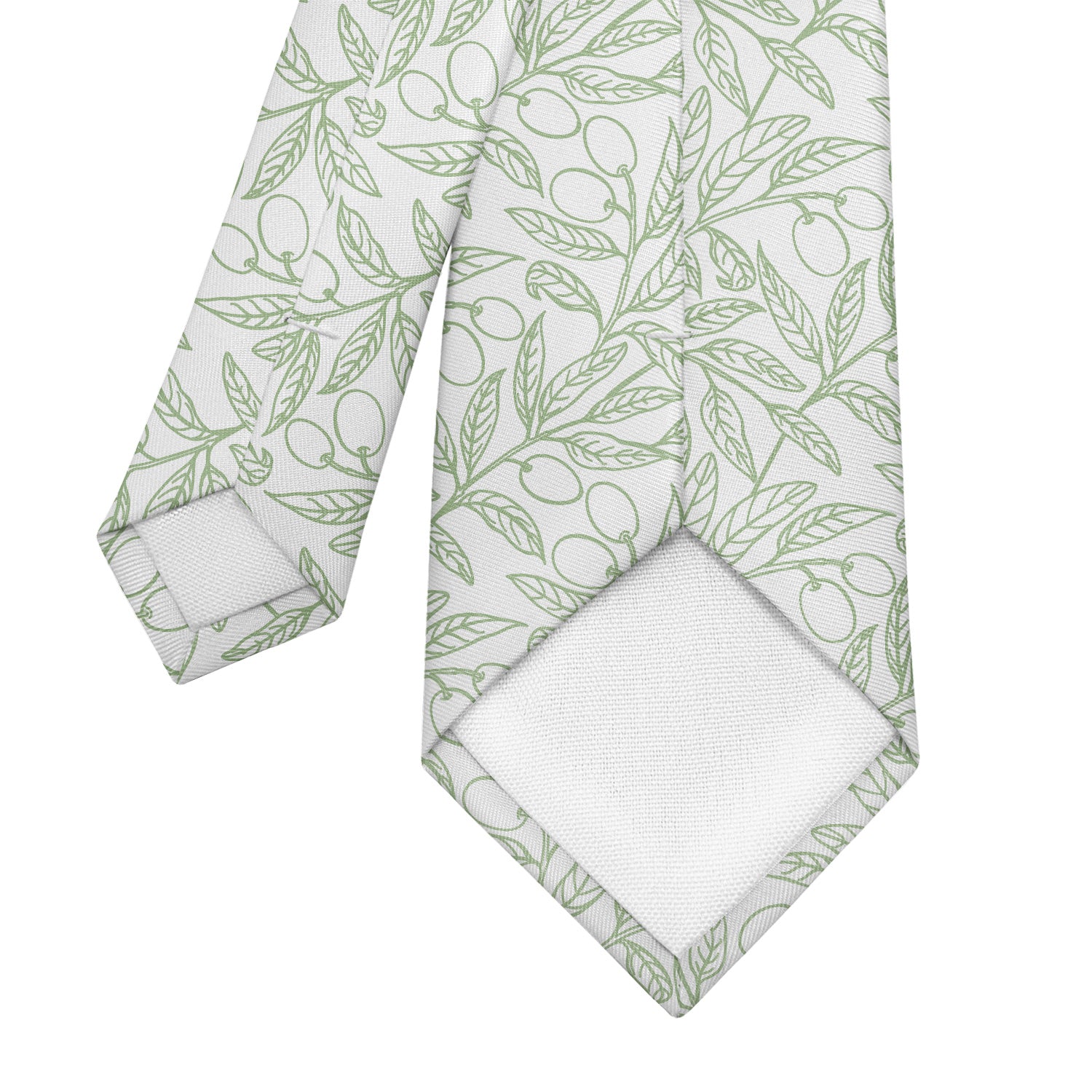 Offering an olive branch has never been so easy. The simple and elegant botanical necktie features delicate olive branch artwork against a solid background. The sumptuous fabric and classic design make the Olive Branch necktie perfect for spring weddings or other special occasions.