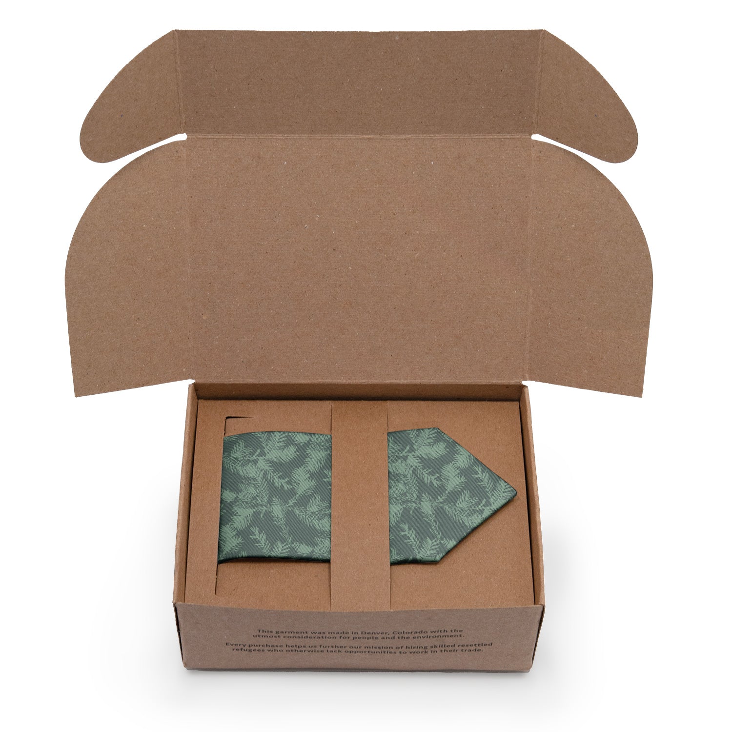 Go forest bathing any time with the Redwood necktie. Scattered redwood boughs give this forest necktie a sense of peace and serenity. The forest green shade makes looks fantastic against a white shirt, or customize the design in your colors to match any outfit.