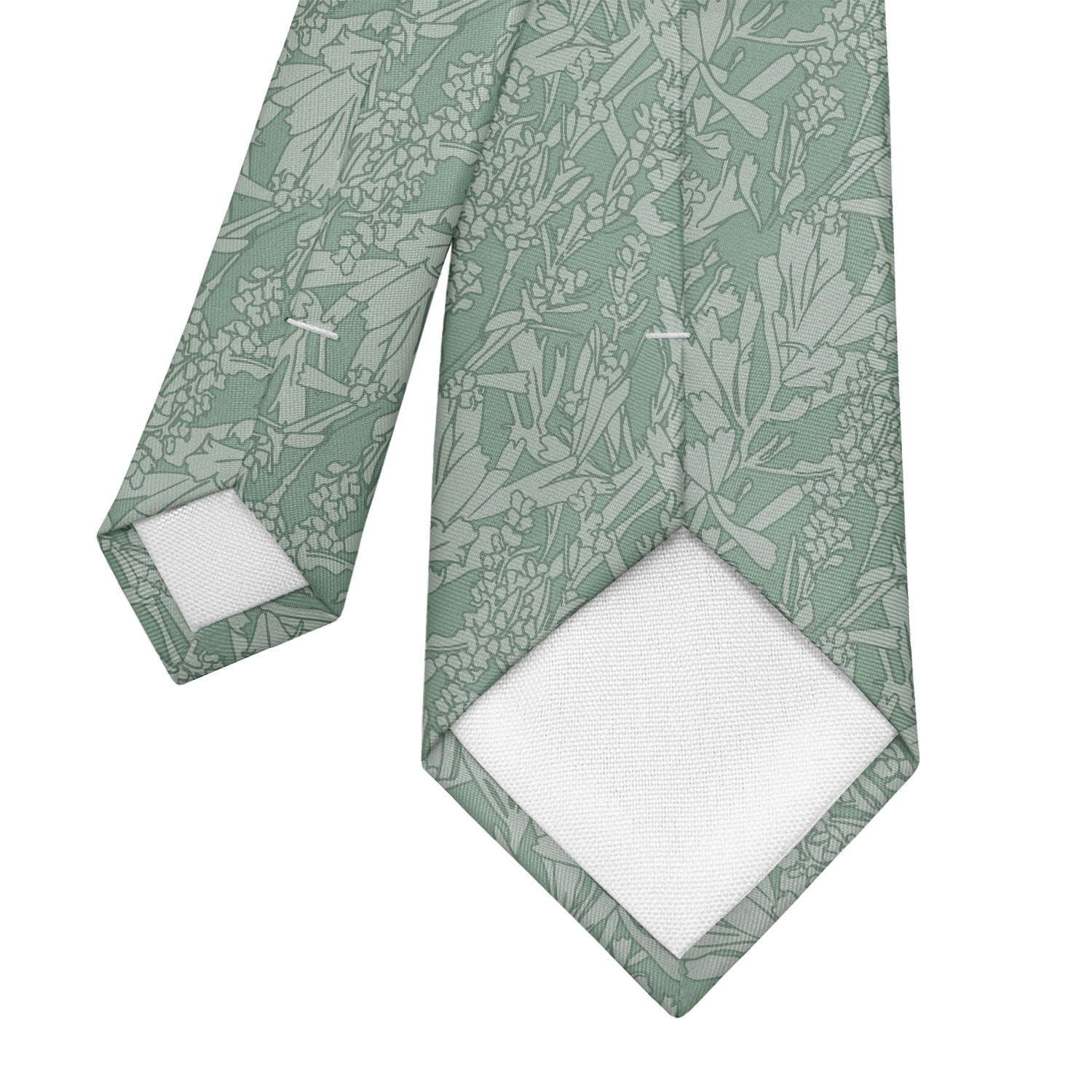This unexpected twist on a floral tie features medicinal sagebrush in place of flowers. Clusters of sagebrush leaves and blossoms dance across the muted background. The Sagebrush necktie is perfect for boho attire.