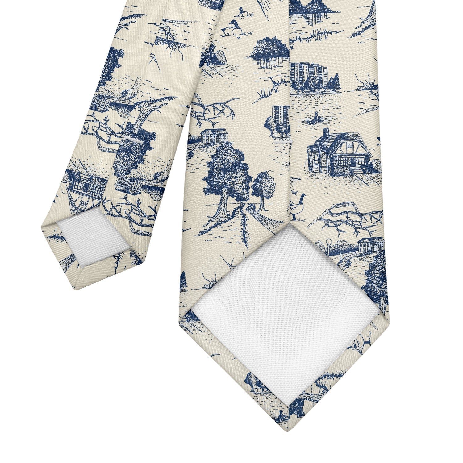 This elegant and traditional feeling hand drawn toile tie design gives you the sense of the rich history of Washington Park and features many of the natural and architectural scenes the park offers.