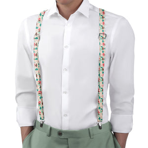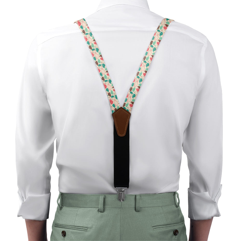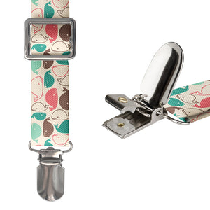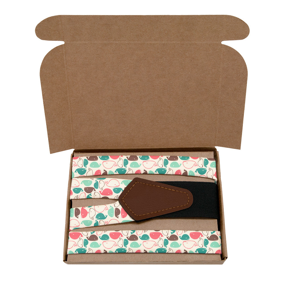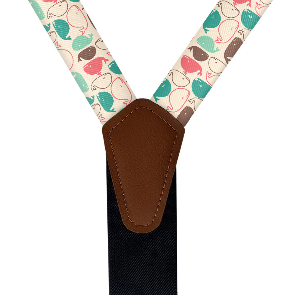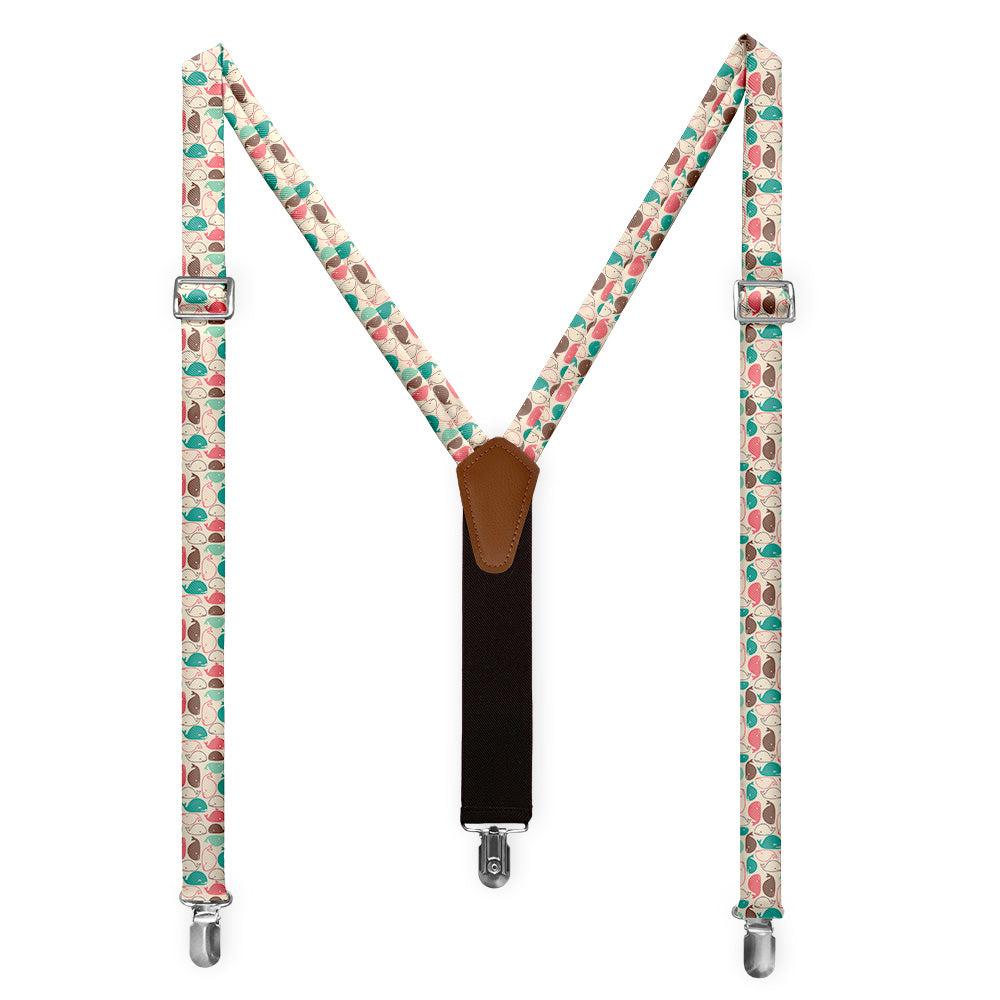 Whimsical whales in summery shades give these nautical suspenders a buoyant feeling. Wear the Whales suspenders to the office, out to drinks, or to a summer seaside wedding.