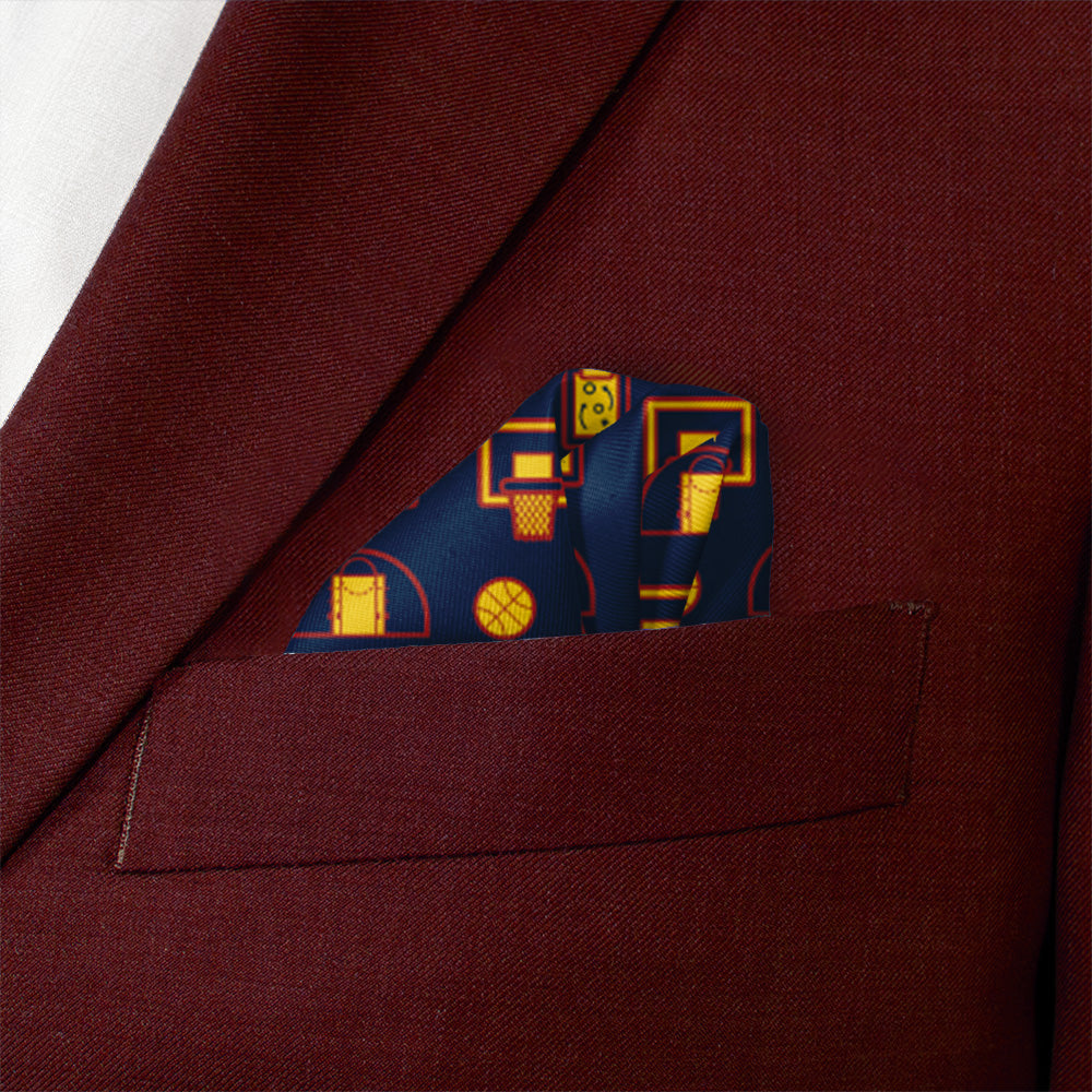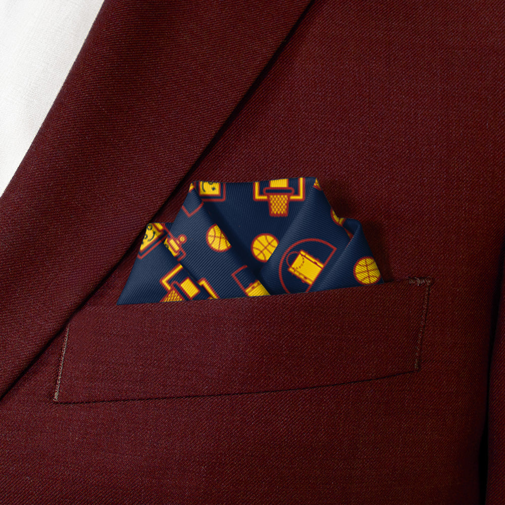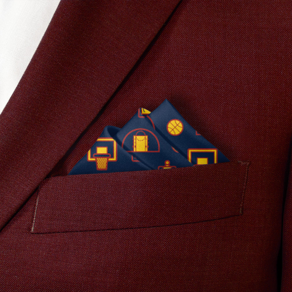 Featuring icons of basketball goals, balls, clipboards, and three point lines, the Backcourt Basketball pocket square is perfect for any basketball enthusiasts. It's a slam dunk for your wardrobe since you can customize it in any color scheme you'd like to match your outfits or represent your favorite basketball team.